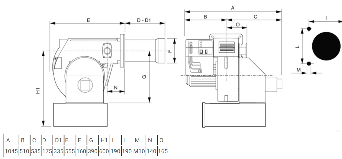 - Короткая пламенная головка регулируется под особенности различных камер сгорания и рассчитана на работу с двумя типами топлива. Предусмотрен удобный доступ к огневой голове без снятия горелки с котла, что упрощает техобслуживание.